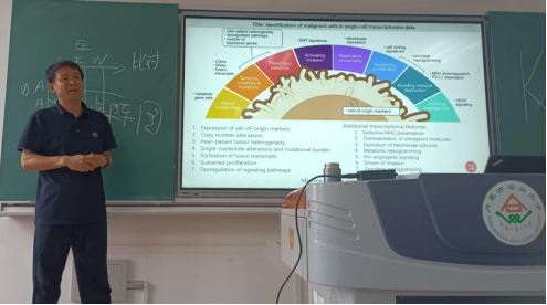 微专业首讲于2025年9月21日(第三周周日)上午8:00,在南区教学楼216教室隆重举行。课程荣幸地邀请到生命科学学院院长、知名教授张文广老师担纲了开课主讲。张教授亲自主持了开课典礼,并与全体学员合影留念。随后,他为同学们带来了题为“数据透视”的精彩讲座,并系统介绍了在生物信息学领域功能强大的可视化数据分析软件——Orange Data Mining,为学员们打开了单细胞数据分析的大门。