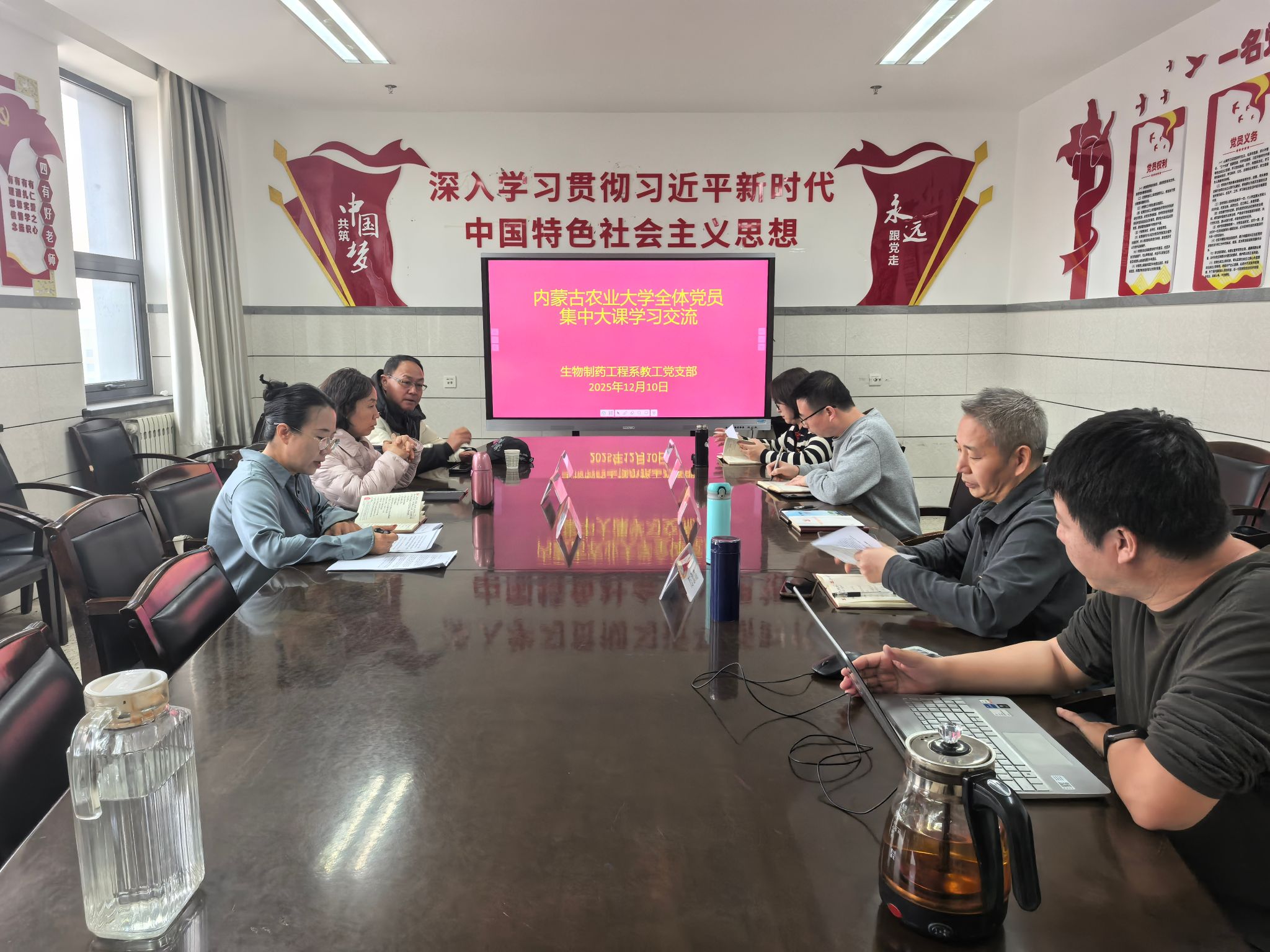 为深入贯彻落实教育强国建设战略部署,巩固拓展2025年党员基本培训第二次集中大课的学习成果,12月10日上午,生物制药工程系教工党支部在学院1102会议室开展专题交流研讨活动。会议由党支部书记杨帆主持,6名教师党员参加会议,学校离退休人员工作处党委办公室主任齐海光同志列席指导。